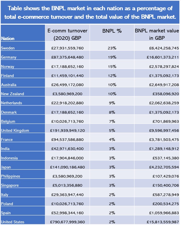 However, the research shows that despite the smaller percentage of the market accounted for by BNPL in the UK e-commerce space, we’re one of the leading nations where the value of this foothold is concerned.