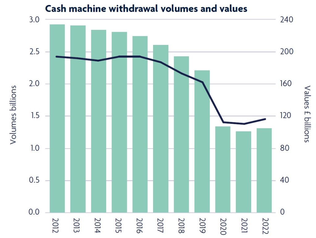 Branch numbers are also falling, with more than 600 banks due to close by the end of 2023, leaving about 4,000 across the UK, according to data from ATM provider Link.