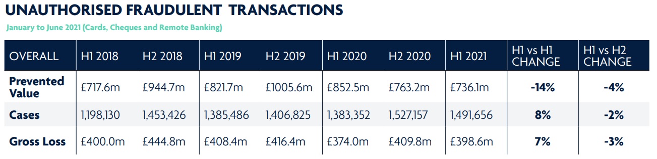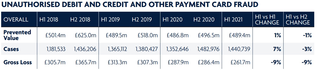 UNAUTHORISED DEBIT AND CREDIT AND OTHER PAYMENT CARD FRAUD UK 2021