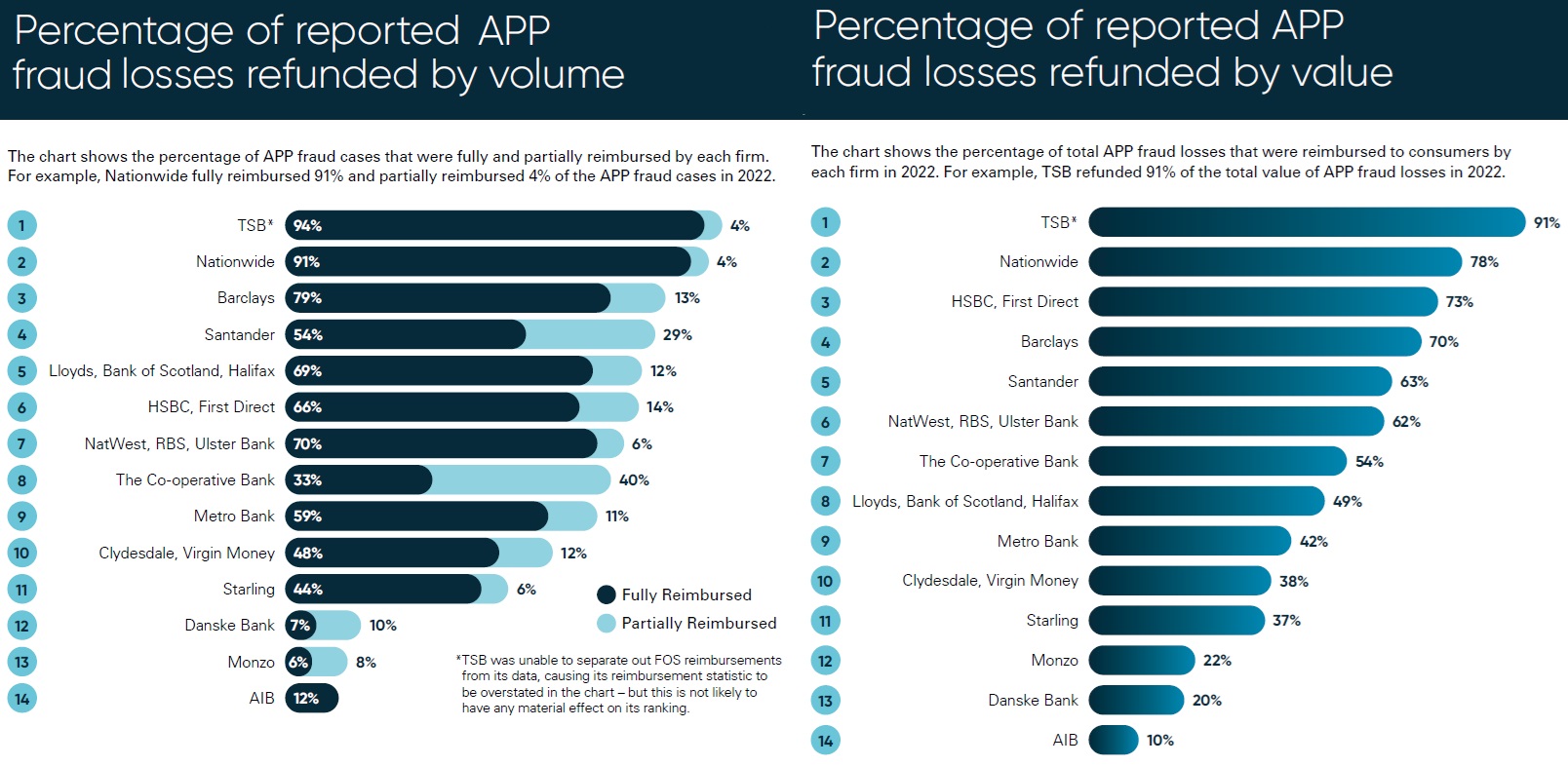 The PSR notes it has seen examples of industry innovation, notably from TSB and Nationwide who had the highest reimbursement levels of the major UK banks in 2022: