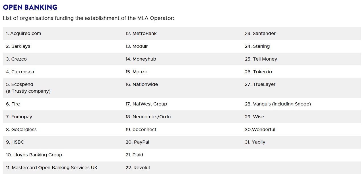 Additional participants span the ecosystem, such as Acquired.com, Token.io, Nationwide, Moneyhub, NatWest Group, Yapily and TrueLayer.