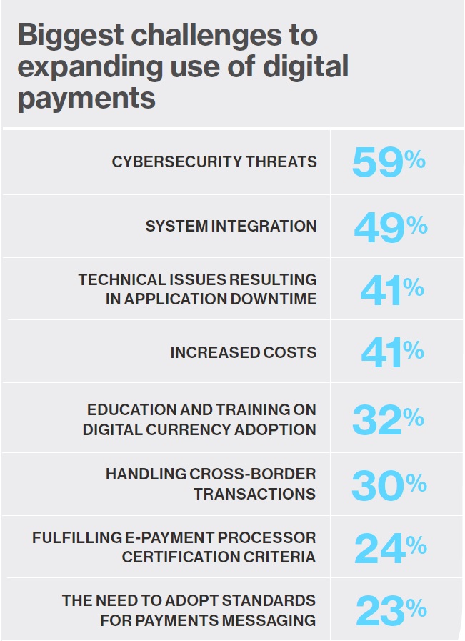 In fact, 42% of respondents in the MIT Technology Review Insights report say security measures are important for their customers, with 59% acknowledging that cybersecurity threats are the biggest challenge to expanding digital payments.