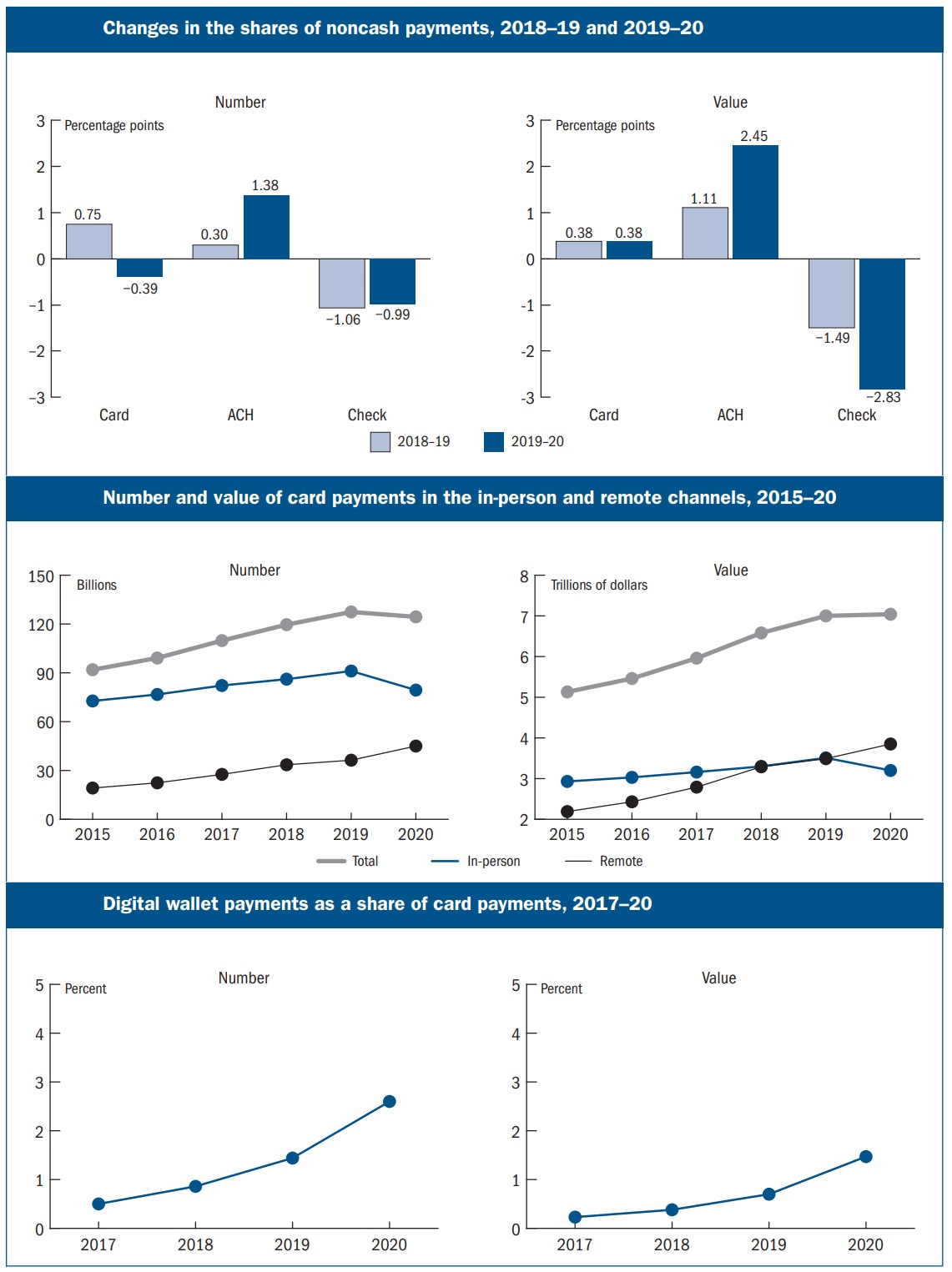 Reflecting the shift away from in-person card payments toward remote card payments, the total value of remote card payments exceeded that of in-person card payments in 2020 for the first time.
